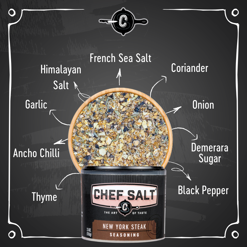 This is the stuff of NYC dreams—loud, bold, and unapologetically flavorful. With a ragged edge and cosmopolitan flair, it brings big city attitude to your kitchen or grill. We’re talking cracked pepper, garlic, salt, and just the right kick to make steaks, chops, meatloaf, or chili taste like they’ve been hustling on the streets of Manhattan. No fluff, no filler—just steakhouse swagger with back-of-house grit.