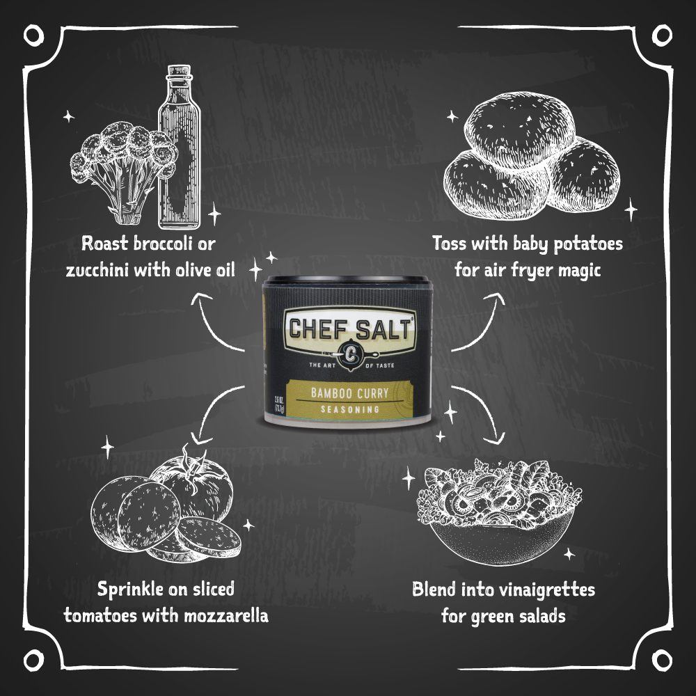 Turn boring ingredients into a flavorful dish with Bamboo Curry Seasoning! Our blend of spices creates an exotic aroma and taste that will make your taste buds dance! Rub it on grilled fish, meat, or vegetables for a flavorful kick, or stir it into soups and pan sauces for a delicious surprise. It's even magical on roasted peaches - who knew? Add some flavor to your life with Bamboo Curry!